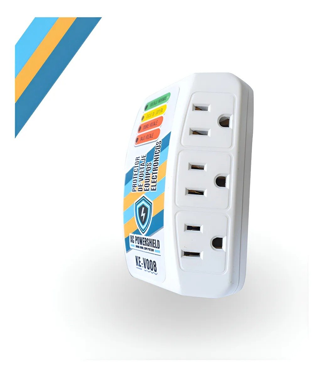 Protector de Voltaje AC PowerShield con 3 tomas, diseñado para proteger tus electrodomésticos y equipos electrónicos contra picos y variaciones de energía, evitando daños y prolongando su vida útil. Ideal para el hogar u oficina.